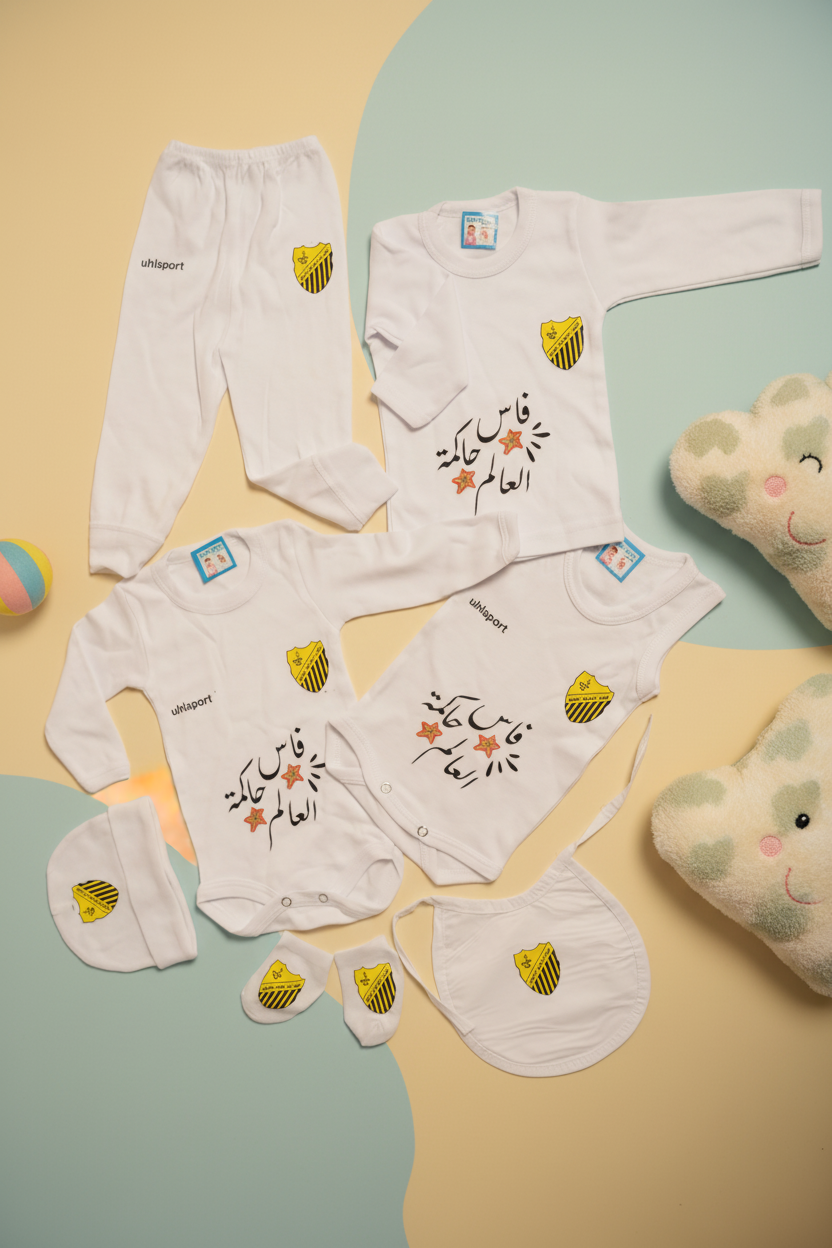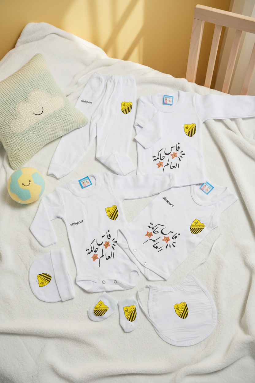 طقم رضّع فاخر مكوّن من 7 قطع بشعار المغرب الفاسي،